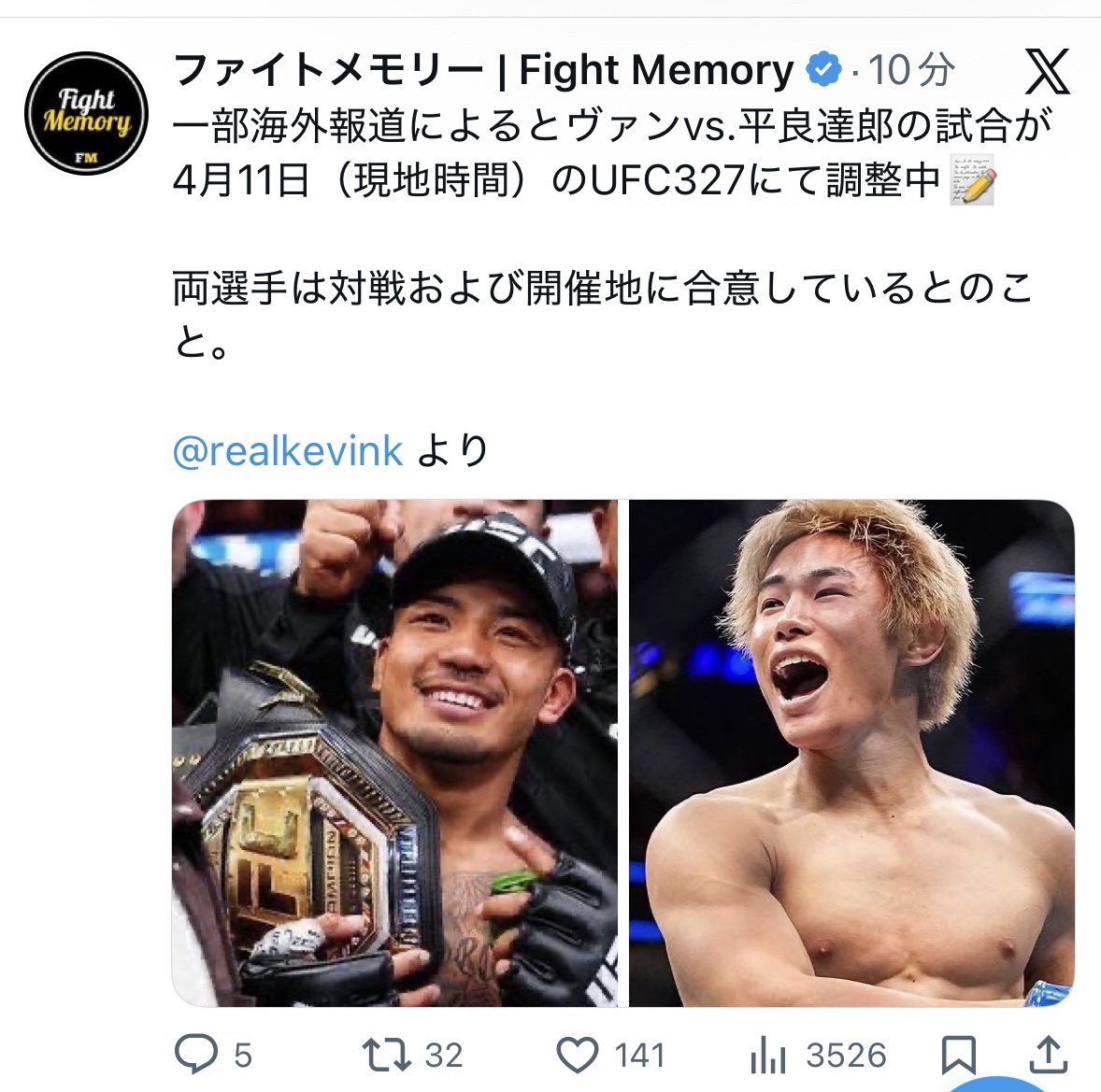 ケイプが日程とか色々注文つけてたらUFCが切れてじゃ達郎で行くわってなったと予想