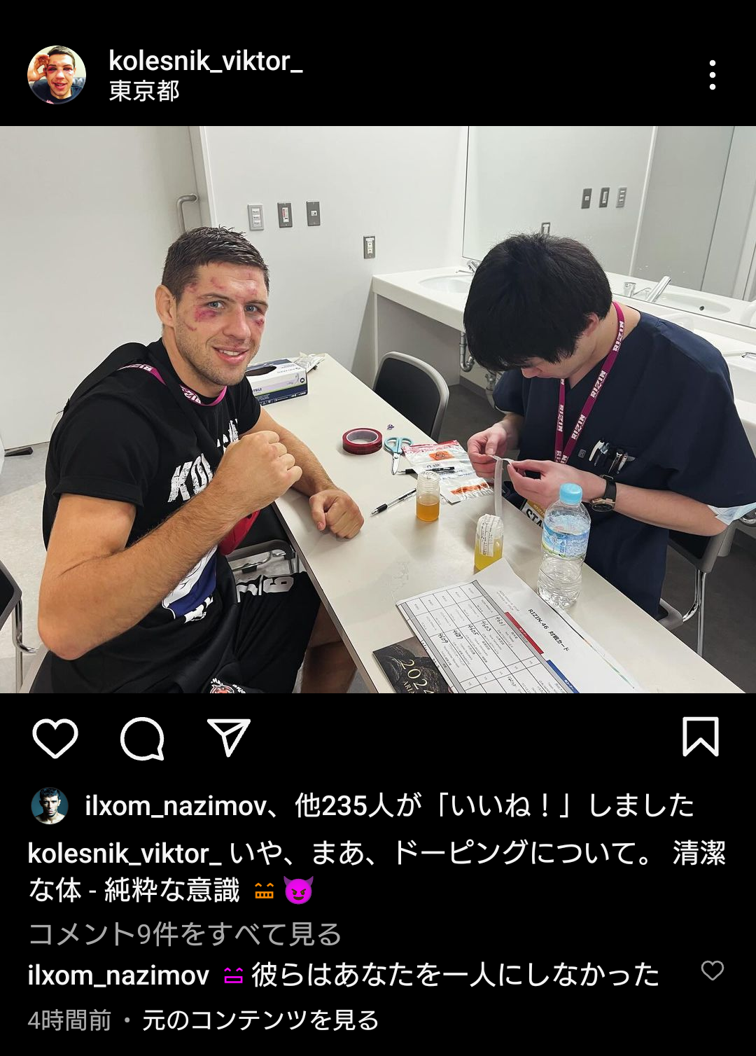 こないだの大会コレスニックはドーピング検査した