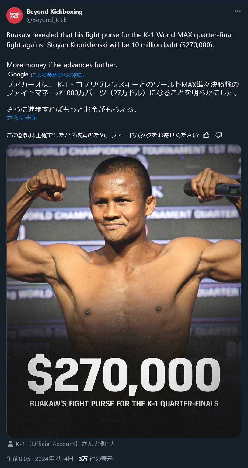 ブアカオー4000万ってキックもファイトマネーが高騰してるのか?
