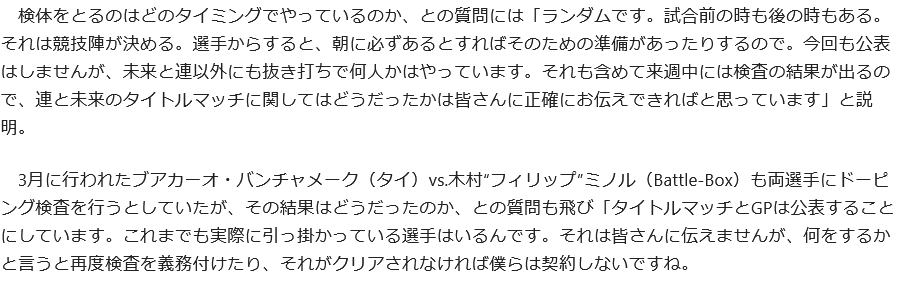 【RIZIN】SNSを騒がす平本蓮のドーピング疑惑について榊原CEOがコメント、ドーピング検査の結果は来週公表https://t.co/9poXRsVM34#RIZIN #平本蓮 #朝倉未来 #格闘技