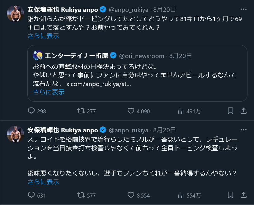 安保もツイートでミノルを格闘技にドーピング広めた伝道師扱いしてたからな