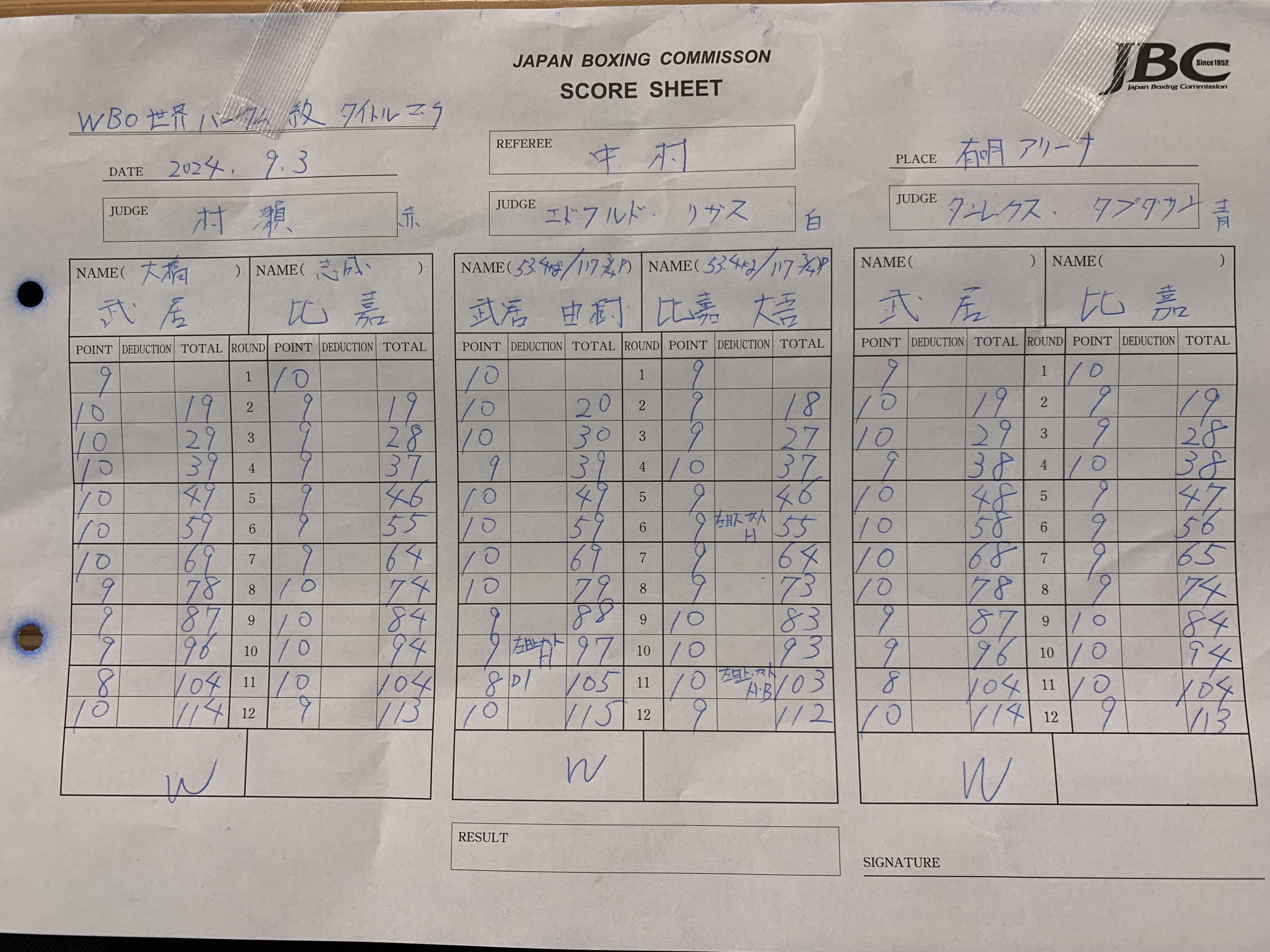 比嘉の方が前半ダウンみたいなのあったし武居の勝ちで良いわ