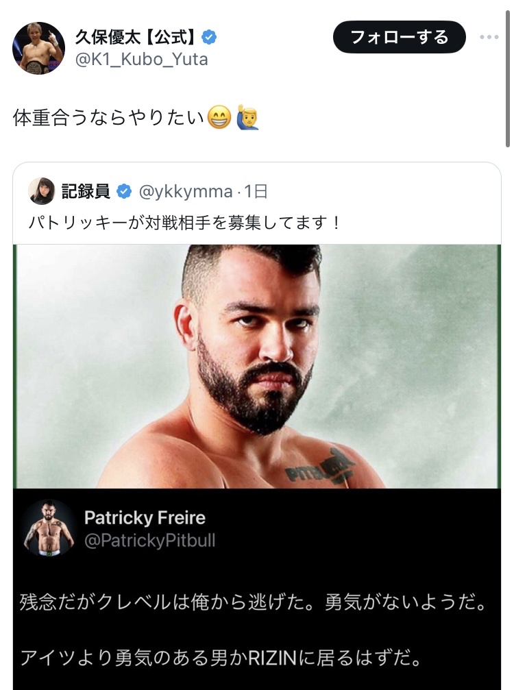 久保優太、パトリッキー戦立候補