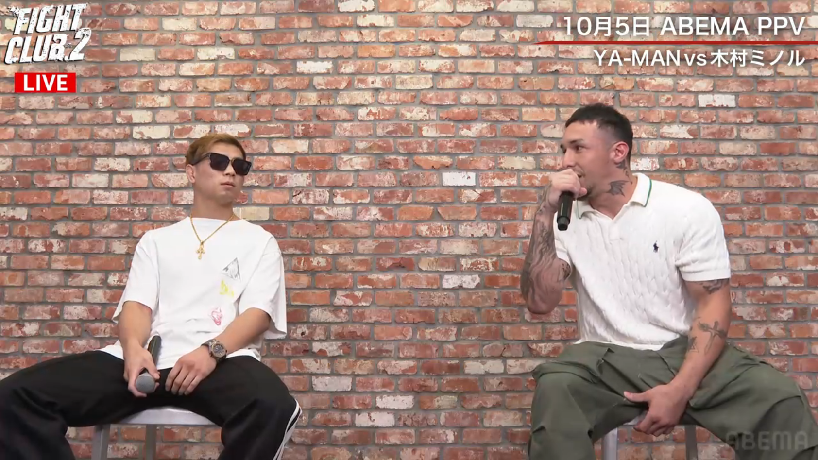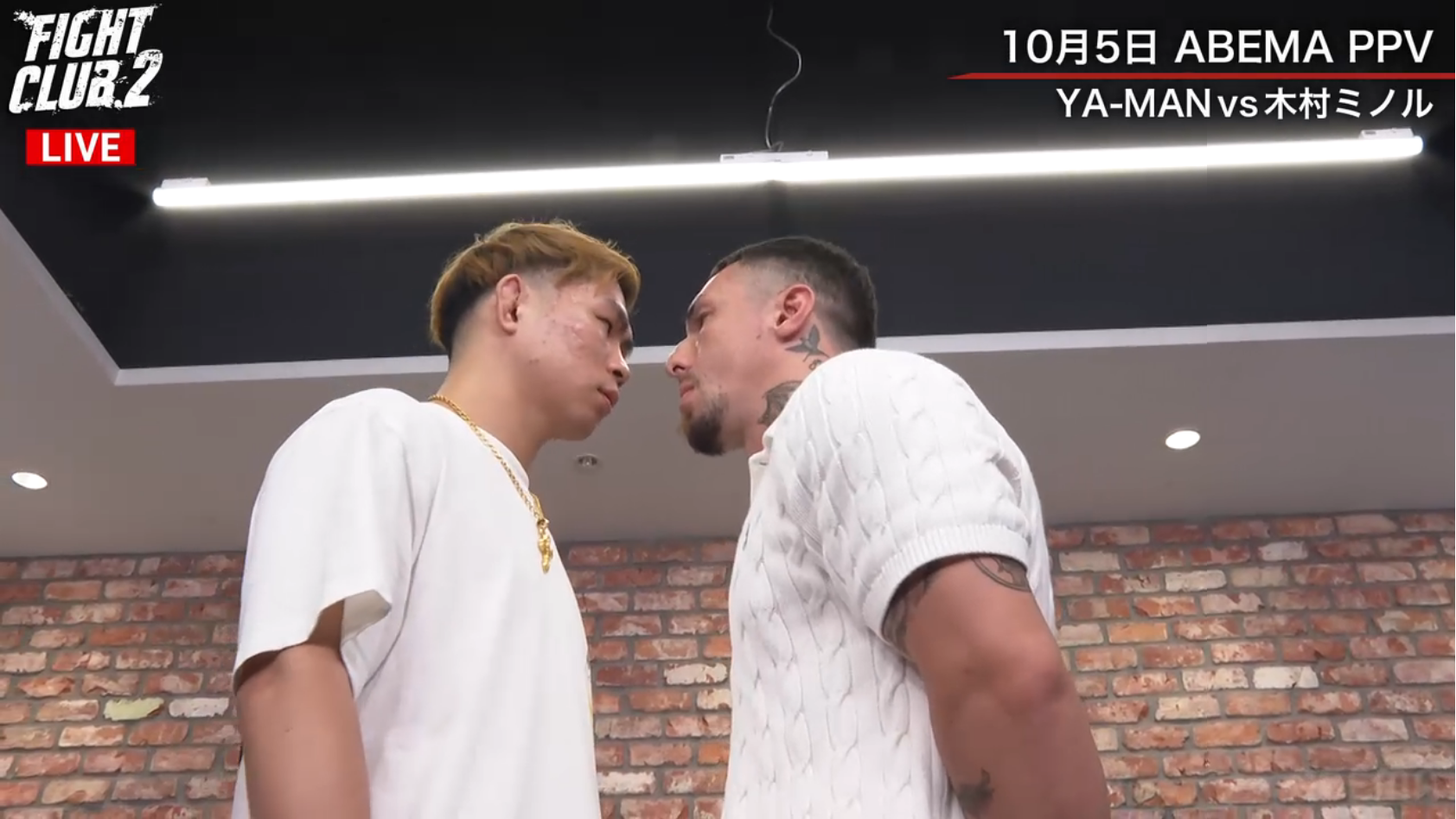 「木村ミノル×YA-MAN」10/5(土) FIGHT CLUB2で対決 OFG72kg契約 PPV3800円