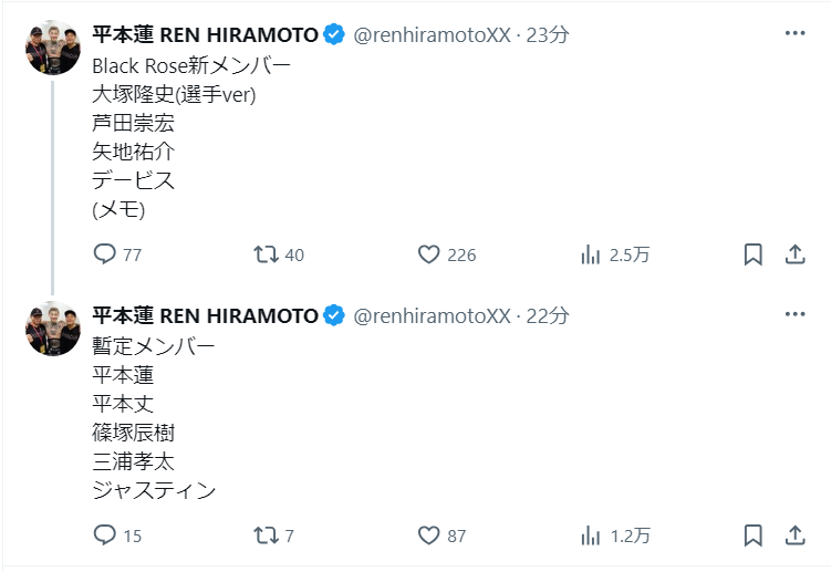 そして平本のブラックローズ解散直後のXでは近々路線を発表するって言ってたけどそれが