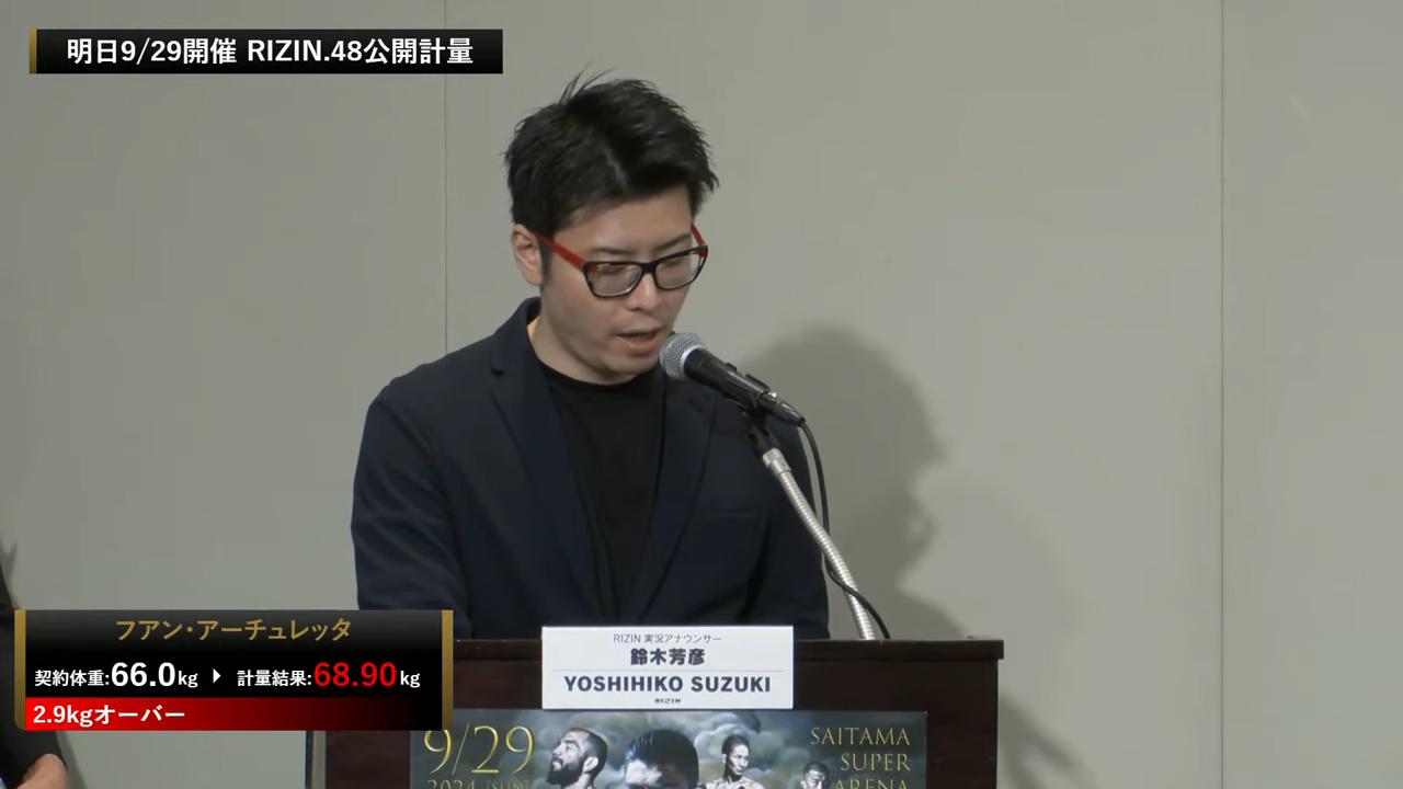 鈴木「アーチュレッタ選手、2.9kgオーバーです!」