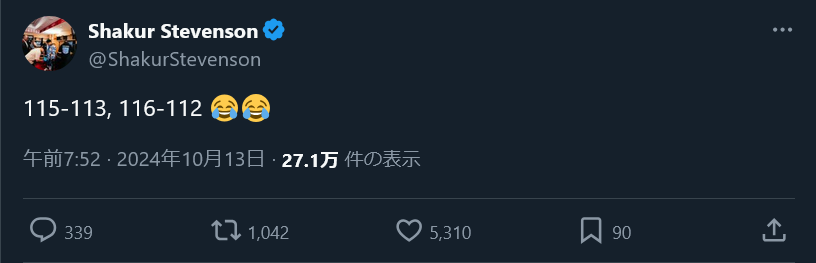 ベテルビエフが勝つとしても116-112はないかなと思ってたが