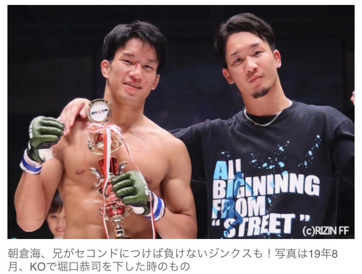 朝倉海、兄未来がセコンド決定で歓喜、勝利のジンクスも!ファン「UFCで朝倉兄弟が見られる」