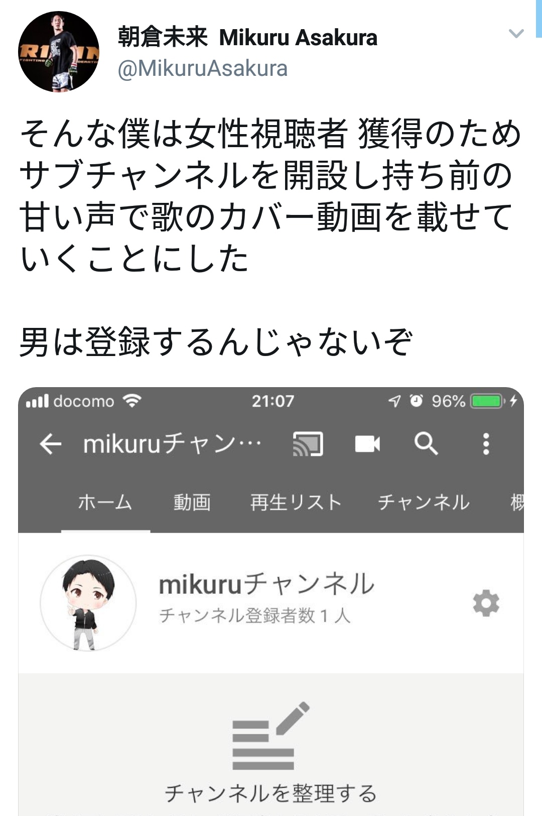 朝倉未来のYouTube登録者数もう9万人越えてんじゃん普通に凄いな