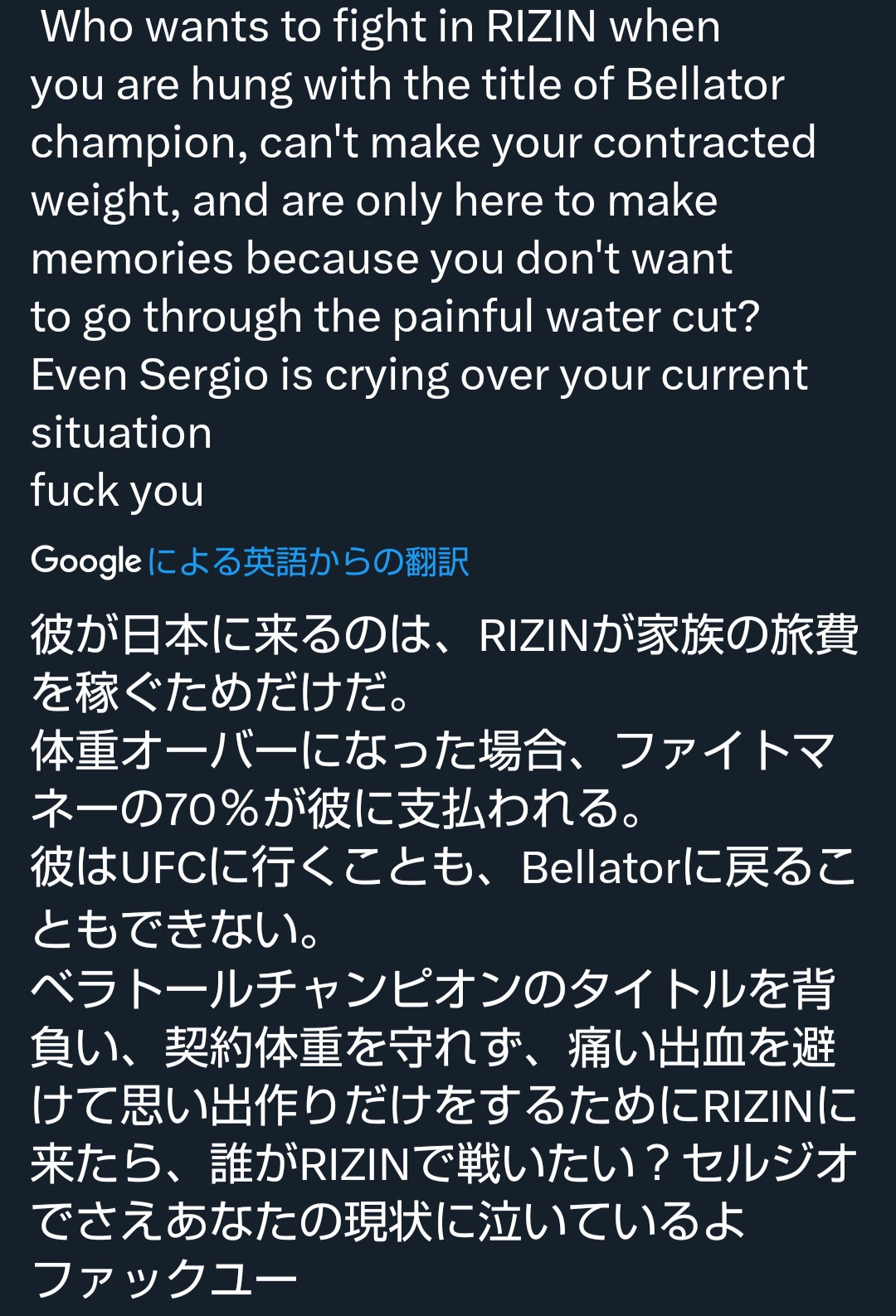 He’s only coming to Japan so that RIZIN can get his family’s travel money.