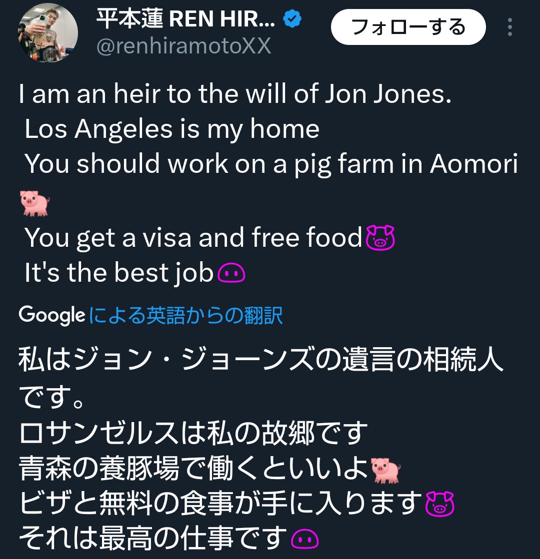 It’s the best job🐽 https://t.co/cAHmV80zPr— 平本蓮 REN HIRAMOTO (@renhiramotoXX) December 10, 2024