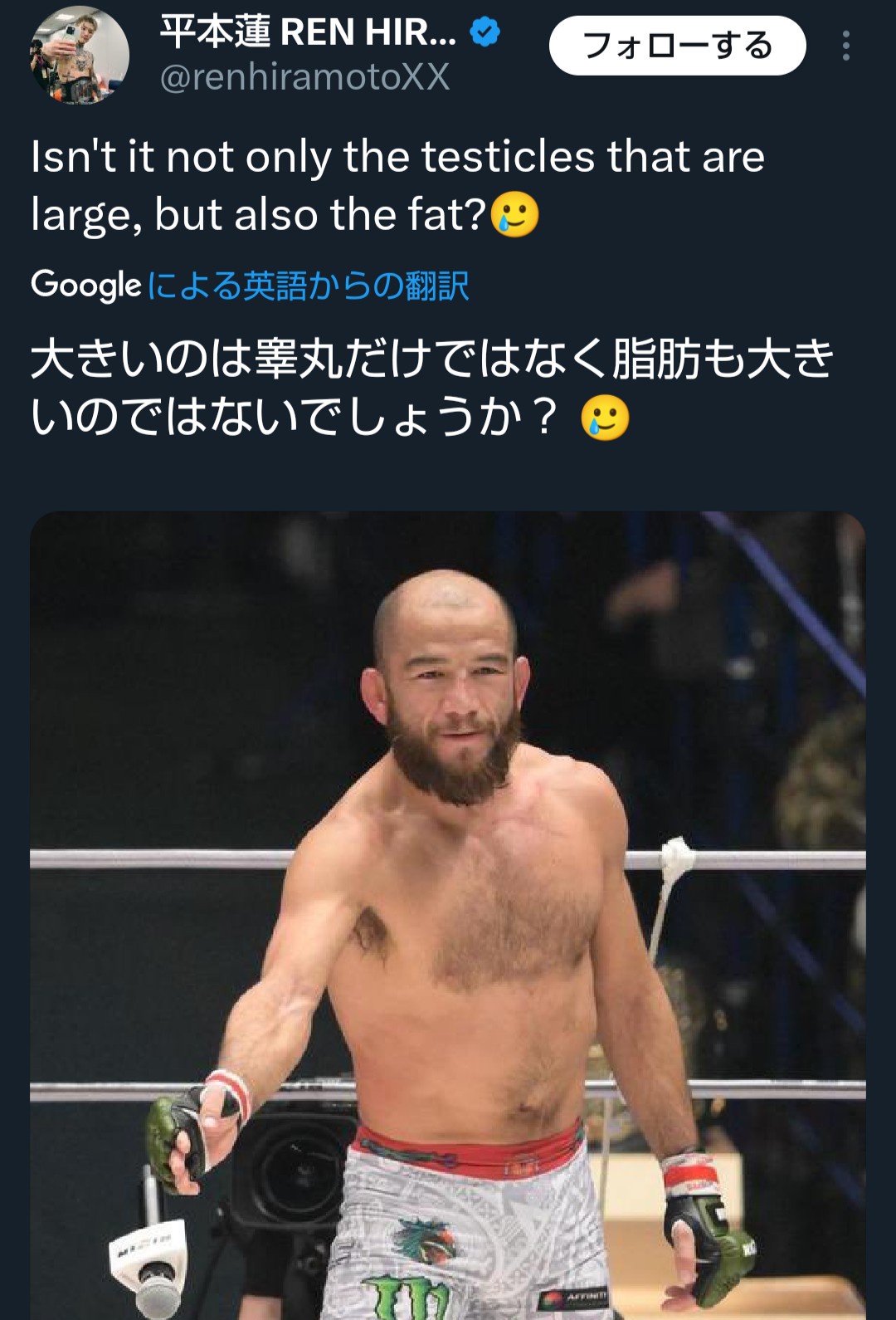 Who wants to fight in RIZIN when you are hung with the title of Bellator champion, can’t… https://t.co/mDRi1xgLVq— 平本蓮 REN HIRAMOTO (@renhiramotoXX) December 10, 2024