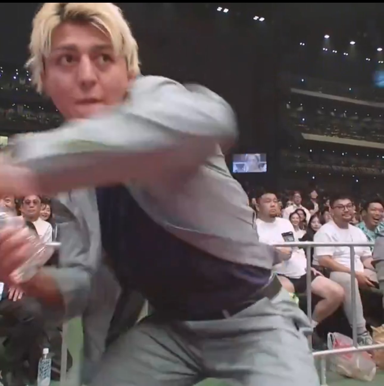 ■鈴木、ペットボトルを上げつける
