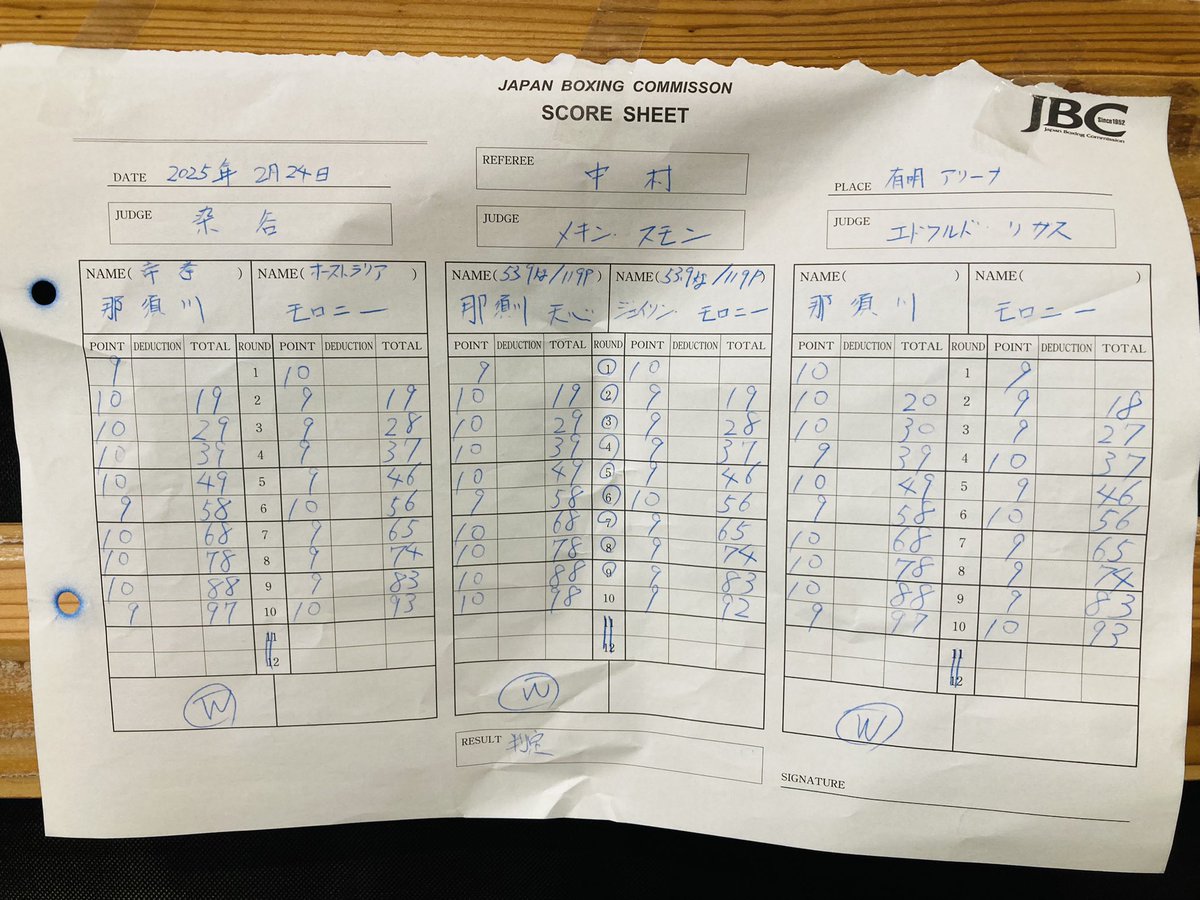 右97-93つけたジャッジは4Rと6Rと10Rモロニー