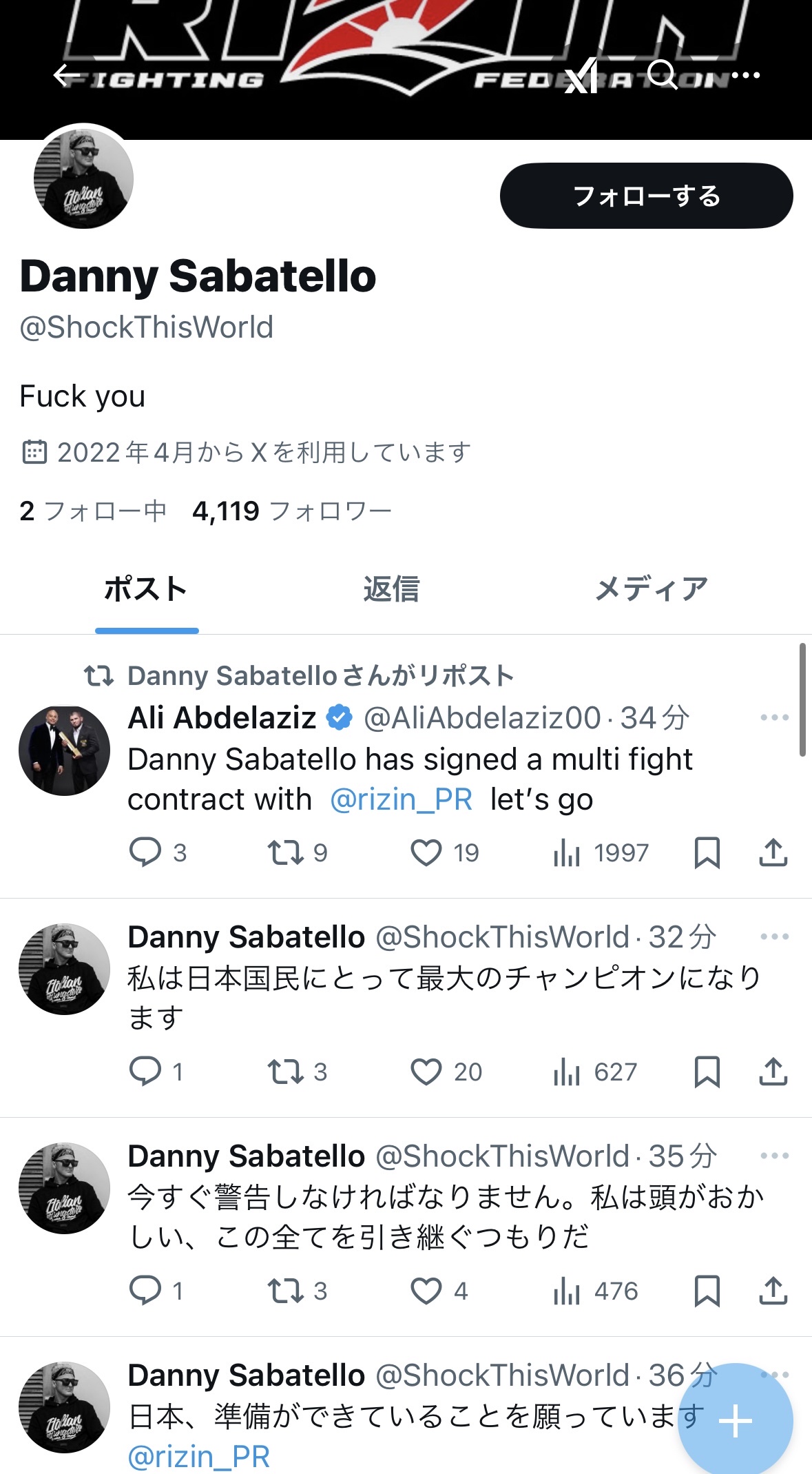 【RIZIN】ATTの“ギャングスター”ダニー・サバテロがRIZINと複数試合契約に、佐藤将光「ずっと準備して待ってました!」、太田忍も反応 #RIZIN #ATT #サバテロ #バンタム級 https://t.co/mfQRn3MDc0