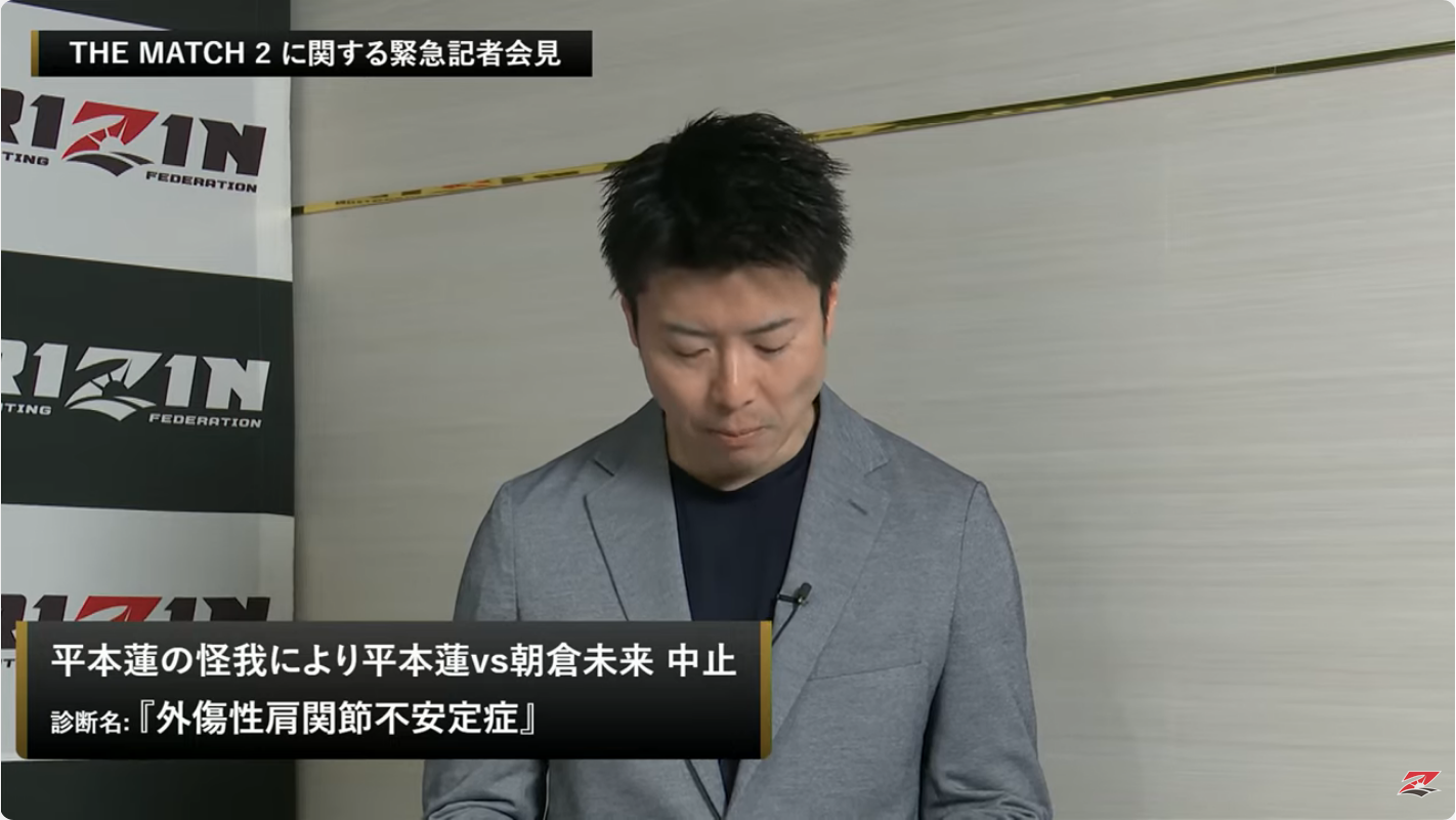 【THE MATCH2】平本蓮肩手術で欠場(全治6ヶ月) 朝倉未来"復活祭"現在模索中