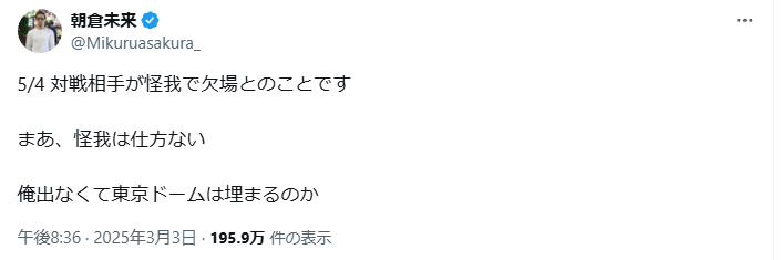 こんなこと言われるとみっくん抜きのドーム大会が盛り上がって