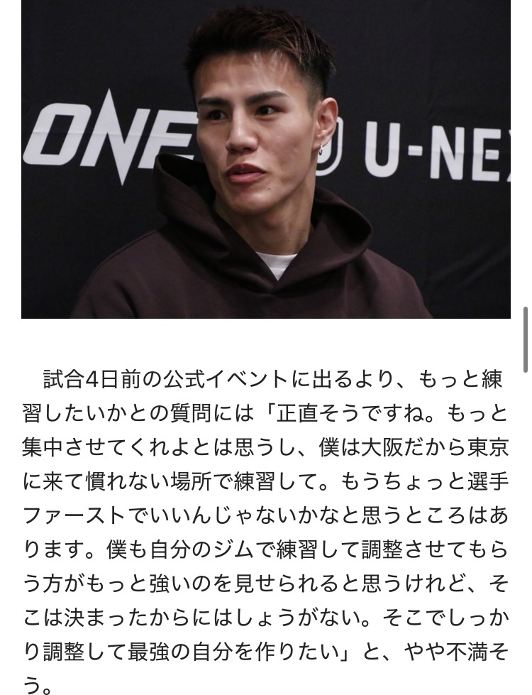 団体としてもwinwinの関係で頼れる人物ではなくなったし今後ONE参戦もうない=繊維最強を証明できなくなったというのがきつい