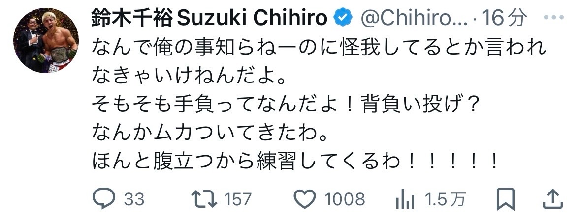 チッヒーが普通の状態だったら話にならんのに手負いでボロボロのお陰で勝負論が出て勝てる可能性が高いって逆に盛り上げてるやん
