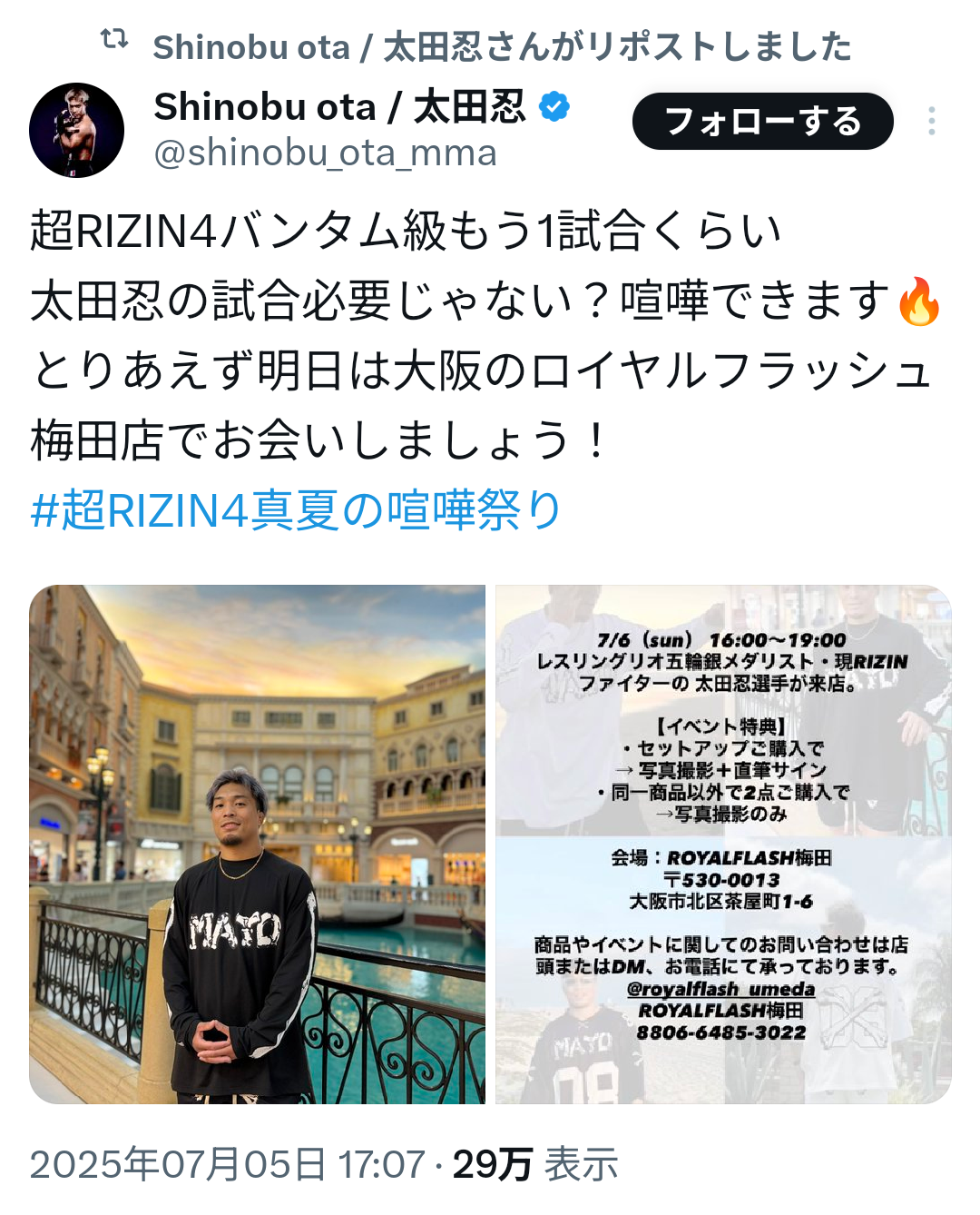 346: 実況厳禁@名無しの格闘家 (ワッチョイW fb02-YHgf) 2025/08/01(金) 18:48:02.82 ID:Uiw3OMkj0