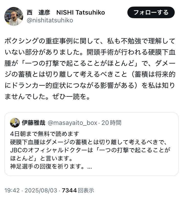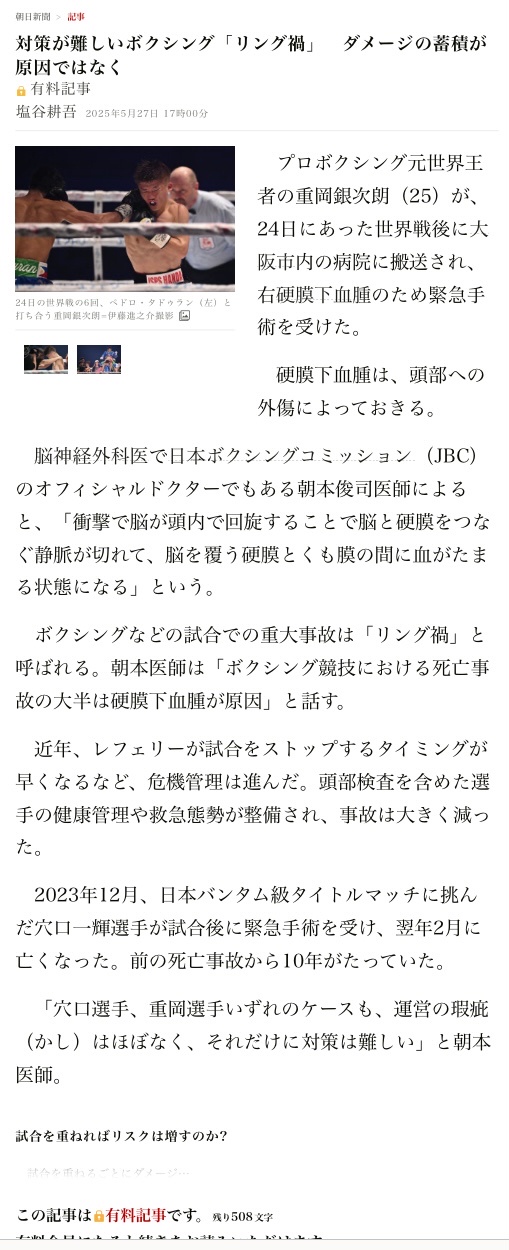 脳出血はパンチのダメージの蓄積ではなく1発のパンチでなる場合がほとんど説はにわかには信じがたいよな