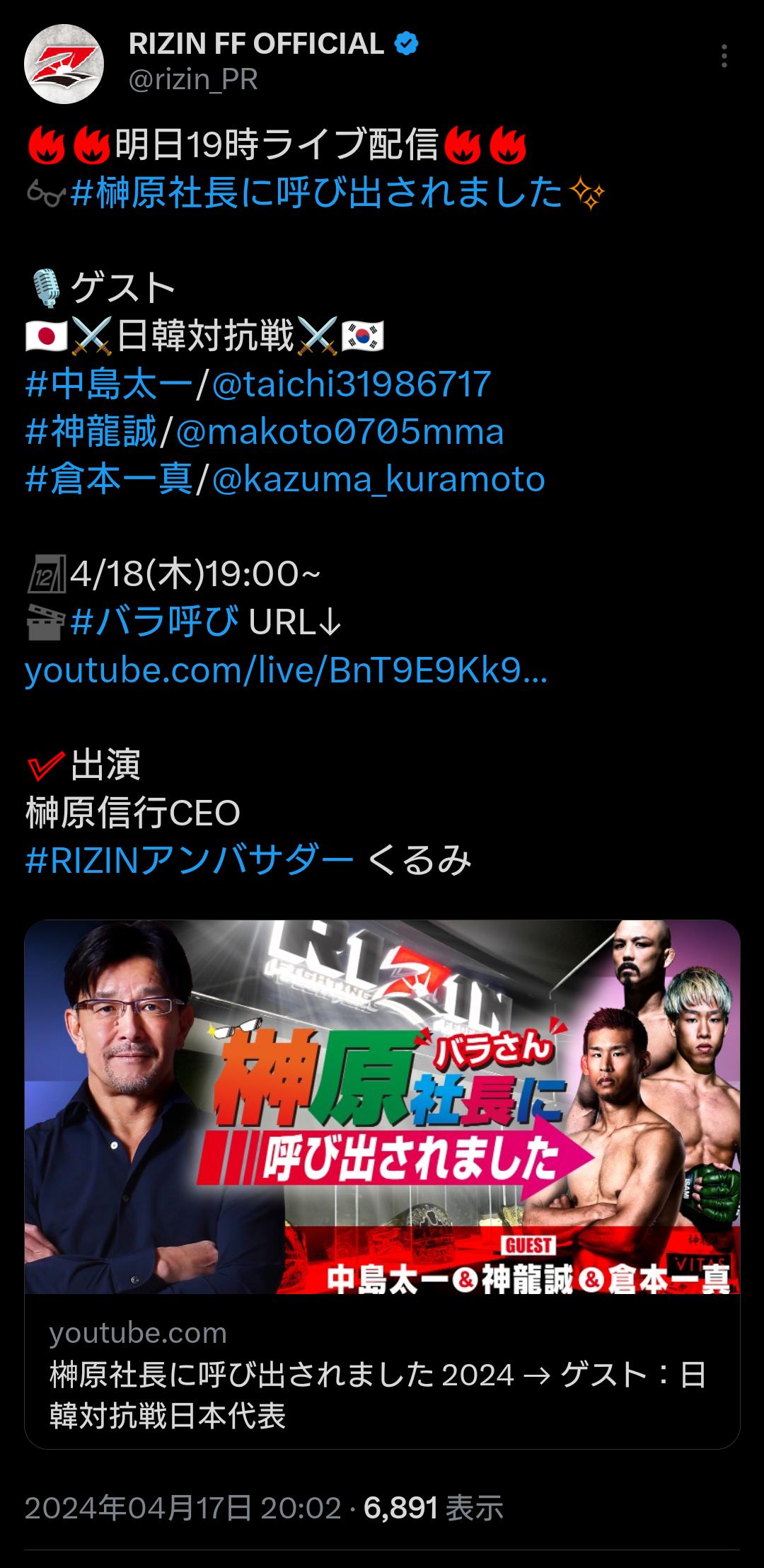 123: 実況厳禁@名無しの格闘家 (ワッチョイW bf58-fkYx) 2024/04/17(水) 18:56:25.84 ID:5aITdeaI0