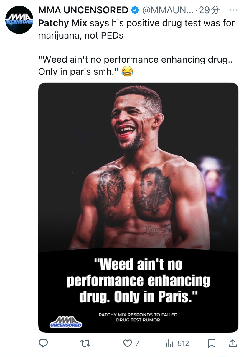 ミックス、マリファナで2024年Bellator時代のドーピング陽性か
