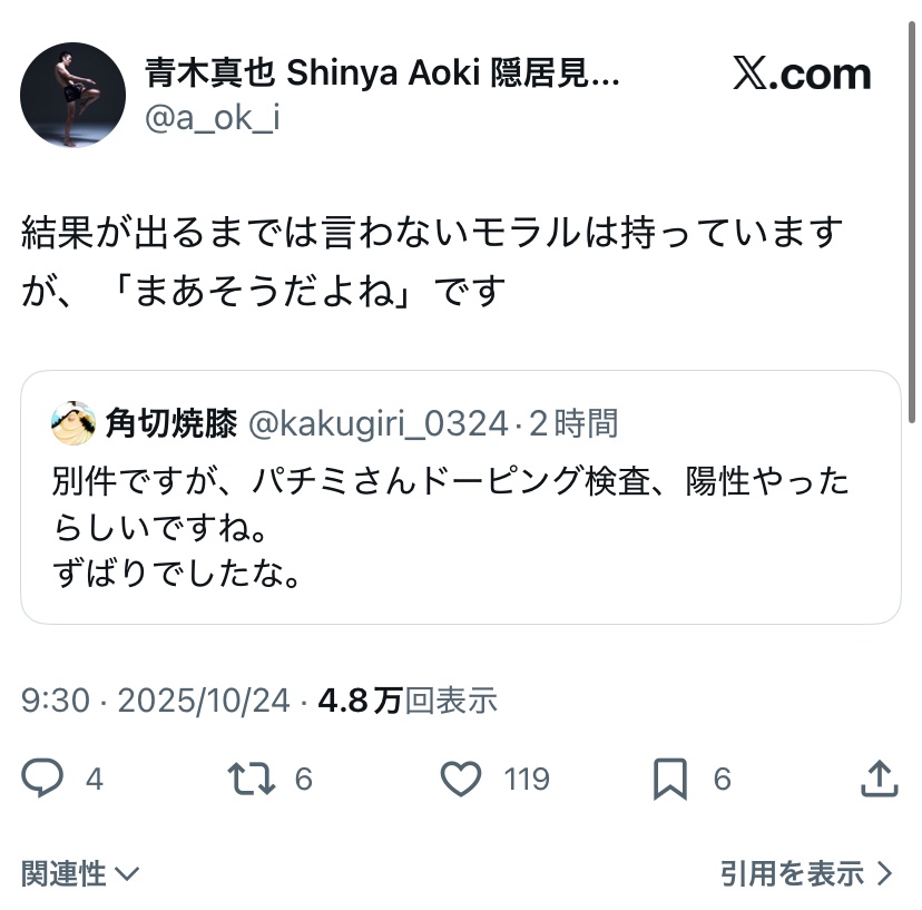 111: 実況厳禁@名無しの格闘家 2025/10/24(金) 10:21:41.82 ID:D8XTlzmK0