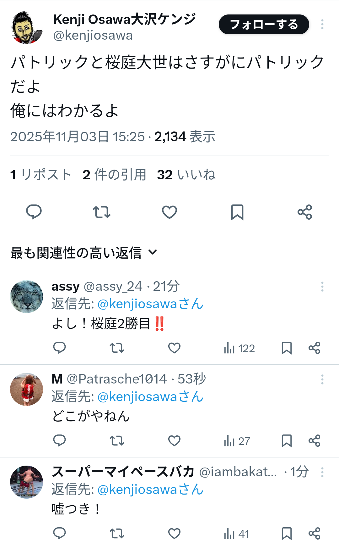 399: 実況厳禁@名無しの格闘家 (ワッチョイ c523-vhIZ) 2025/11/03(月) 15:50:29.96 ID:DB4VM3xR0