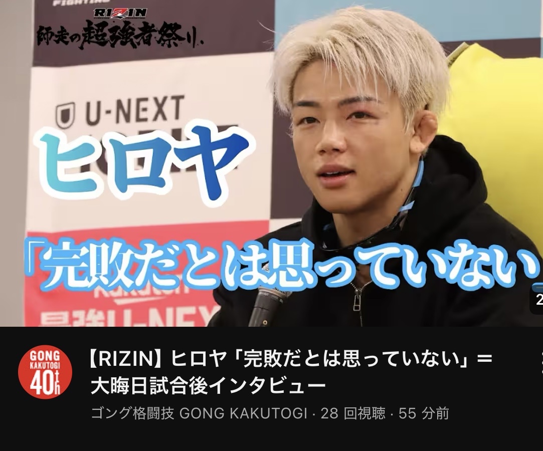 ヒロヤ、RIZINフライ最下層の優作に負けてるのも痛いよな