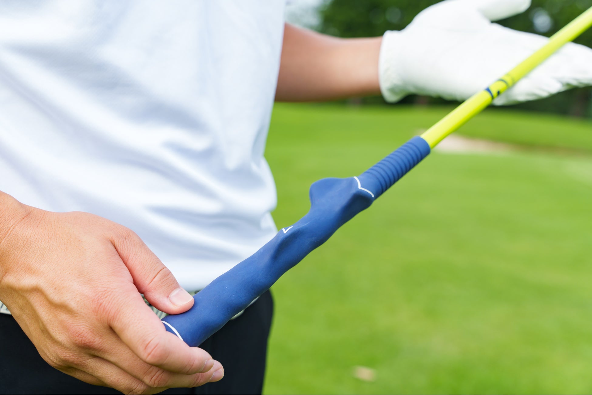 スイング系練習器具のサイコースピーダーは、素振りをすることでヘッドスピードの減速原因となるインパクト時の上体や腕の力みを解消し、ヘッドスピードを向上させることで飛距離UPにつなげる製品です。一方、ゴムチューブ型のスイングコーチャーは、体幹・ハムストリングの強化やテイクバック・フォロースルーのイメージトレーニングができるだけでなく、サイコースピーダーやゴルフクラブとあわせて使用することで様々なトレーニングが可能です。どちらもグリップは矯正グリップとなっており、素振りをするだけで正しい握りが作れるようになっています。