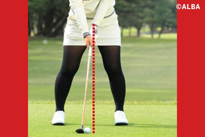 アイアンのようにクラブを振るためボール位置は少し右寄りです。両足のセンターより少し右に置きます。