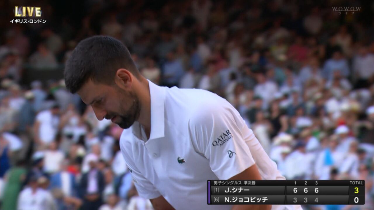 【悲報】ジョコビッチ、対シナーまさかの5連敗!頼みの綱の芝でもストレート負け!もう二度と勝てないの…?