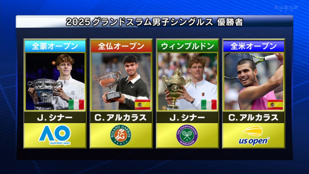 【朗報】テニス界、2年連続シナー&アルカラスがGS優勝を分け合う!!完全なる2強体制へ!!